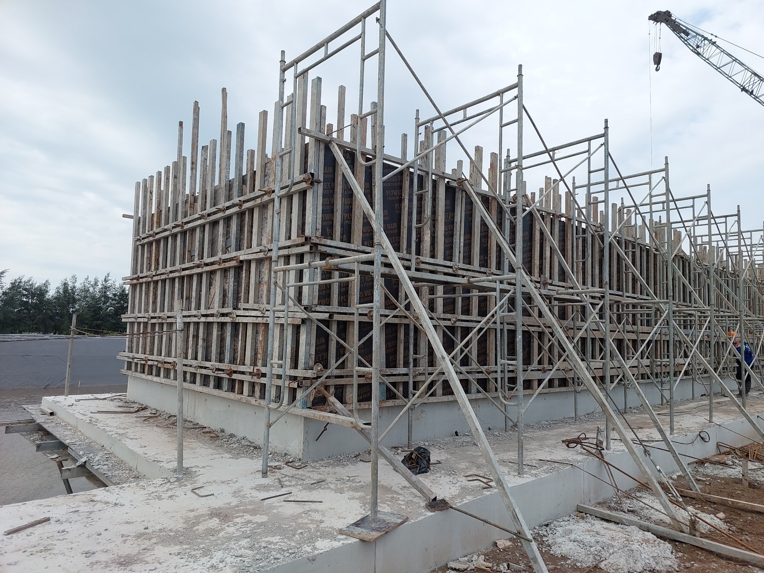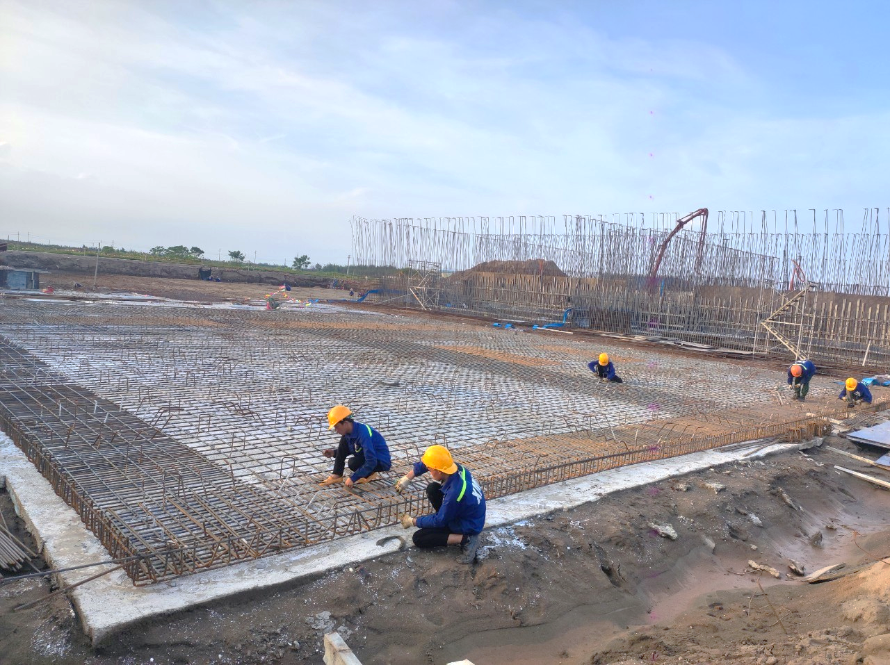 Hiện tại Công ty Xuân Mai đang thi công kết cấu đồng thời các hạng mục: Nhà trên hồ, Cụm bể sinh học, Cụm bể hóa lý, nhà hóa chất, ép bùn và nhà thổi khí,…